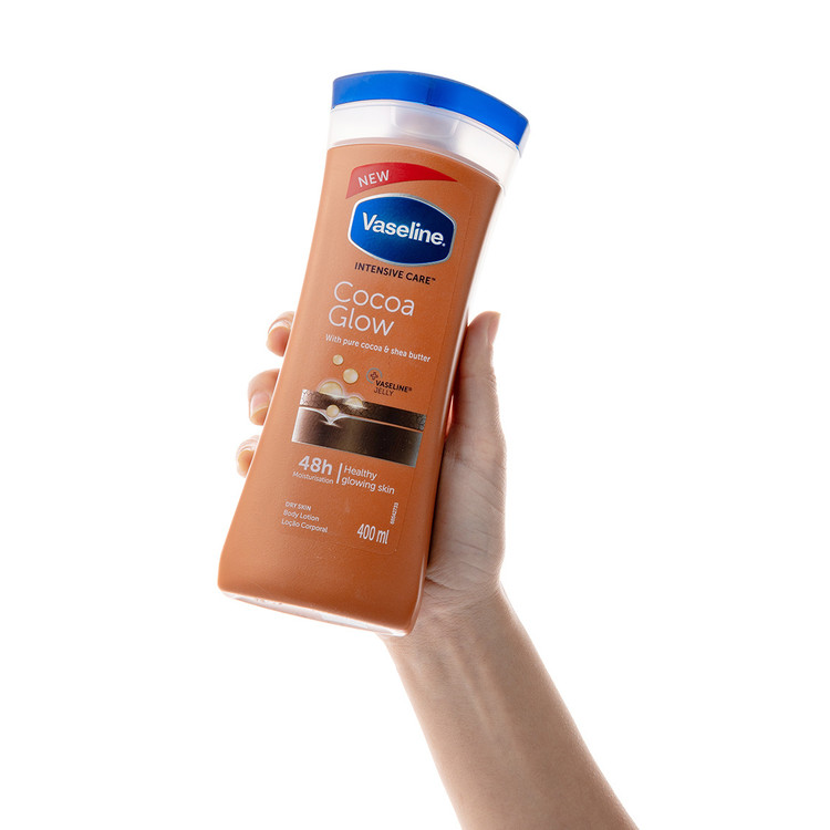 لوسیون بدن وازلین مدل Cocoa Glow حاوی عصاره کاکائو