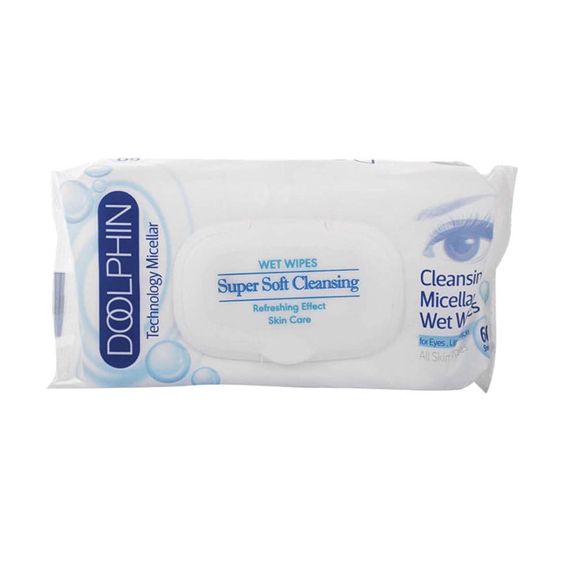 دستمال مرطوب پاک کننده آرایش برند دلفین 60 عددی